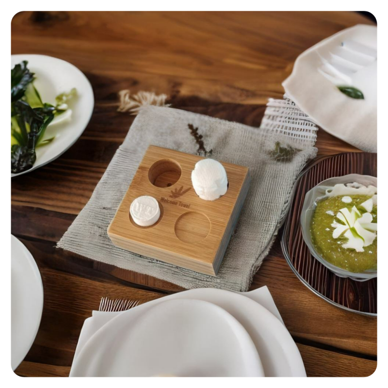 De stijlvolle combinatie van de Welcome Towels met de Bambu Cubes geeft jouw restaurant een extra stukje persoonlijkheid.